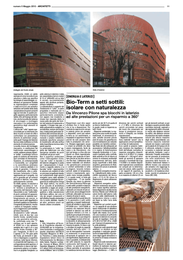 BIO-TERM a setti sottili: isolare con naturalezza: Da Vincenzo Pilone s.p.a. blocchi in laterizio ad alte prestazioni per un risparmio a 360°