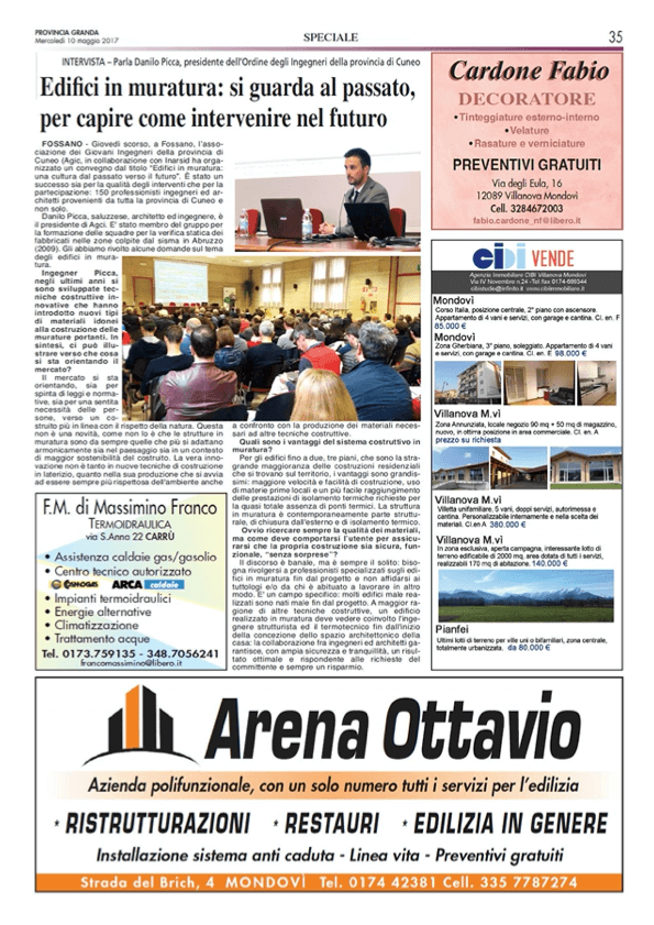 Edifici in muratura, tra passato e futuro. Convegno dal titolo “Edifici in muratura:una cultura dal passato verso il futuro” organizzato dall’associazione dei Giovani Ingegneri della provincia di Cuneo (Agic).